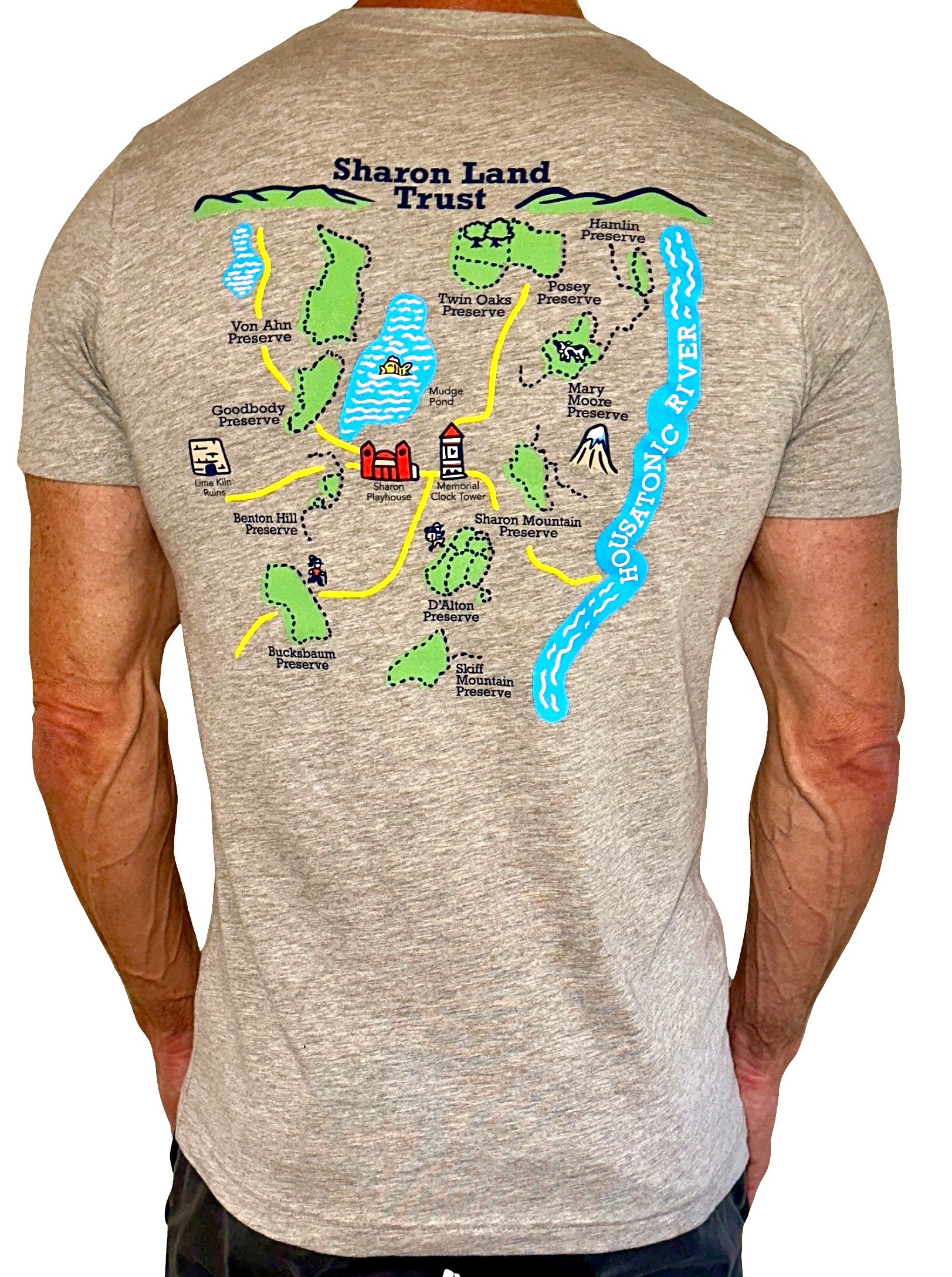Sharon Land Trust’s short sleeve T-Shirt is a far cry from the thick, boxy t-shirts of yesterday. The unisex jersey tee is a favorite with your Sharon Land Trust fans. It’s a super soft, incredibly comfortable slim fitting t-shirt. Features a cover-stitched collar and sleeves, and a tear-away label for added comfort. The white shirt is 100% airlume combed ringspun cotton, and the heather shirt is an athletic blend of 90/10 airlume combed and ringspun cotton/polyester.